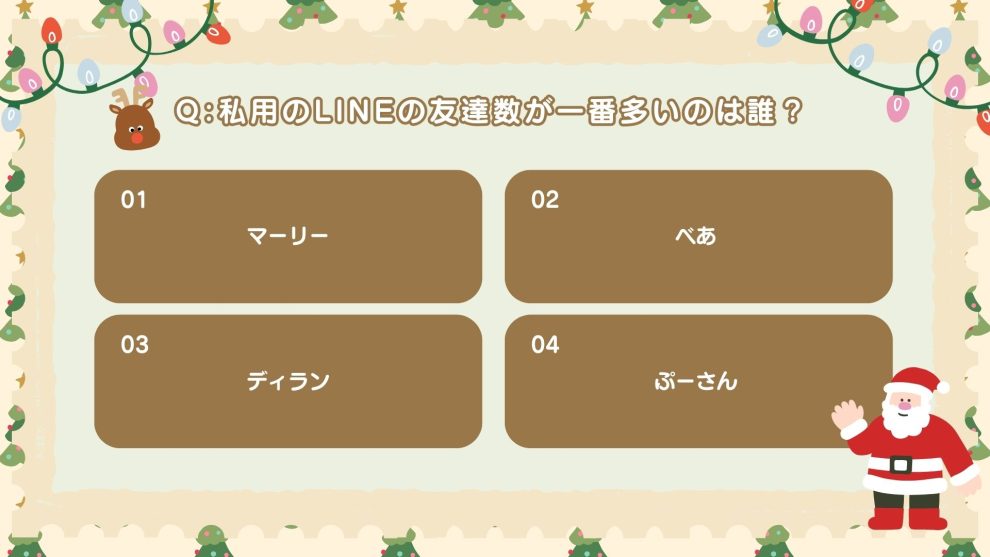 4択の中から1位のメンバーを当てるゲームで、選ばれる本人も直前まで不明!