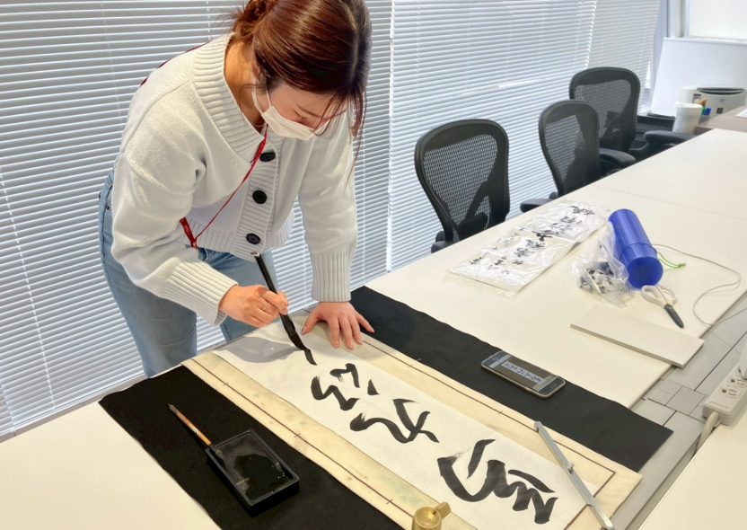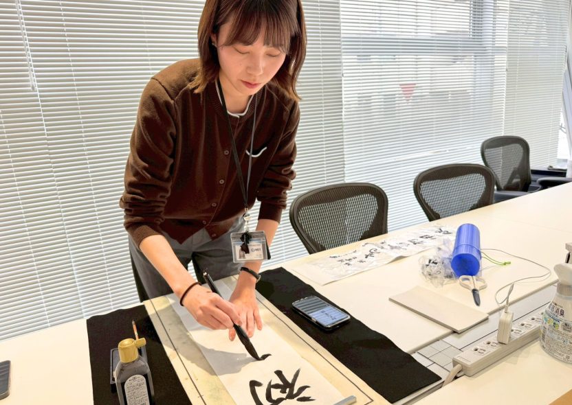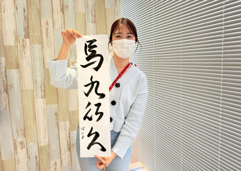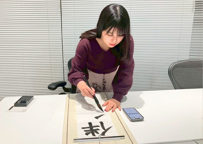 久々の書き初めに少し緊張しつつも、「今年はどんな文字にしようかな?」と楽しみながら書いてくれました!クリエイティブな部署ならではの目標とは?